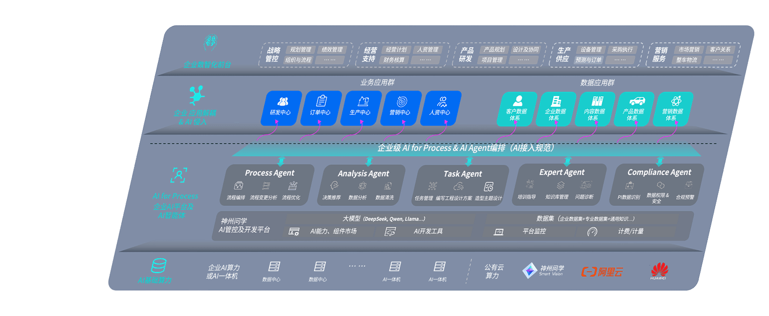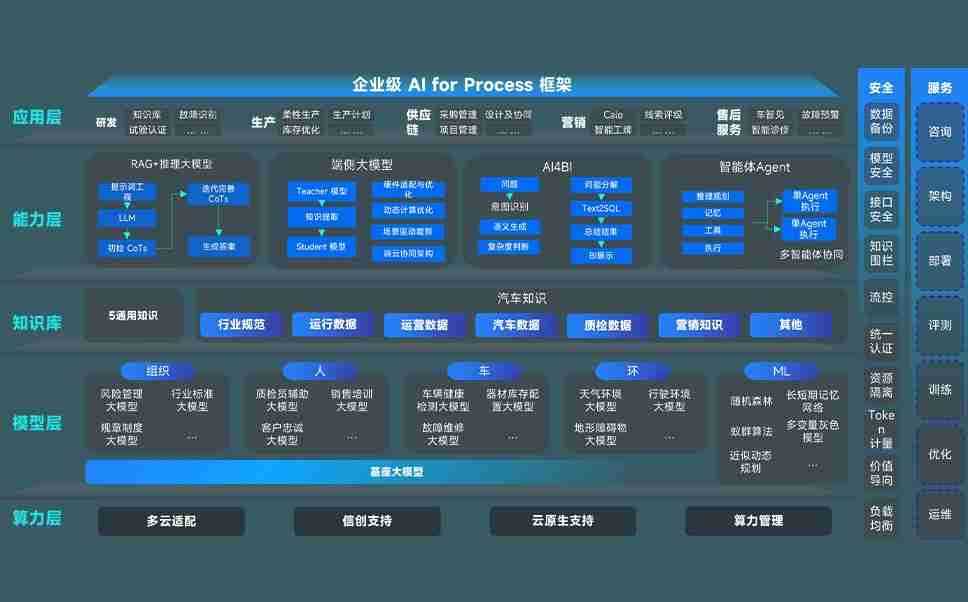 端到端的一站式AI工作空间深度融合了从企业战略规划到日常经营的全流程业务板块,,,定向解决车企内部领域多、、部门多、、、、链条长、、场景碎片化等难题,,,,支持车企快速构建以AI为核心的生产力写作体系,,,实现任务执行与AI能力的无缝集成与交互